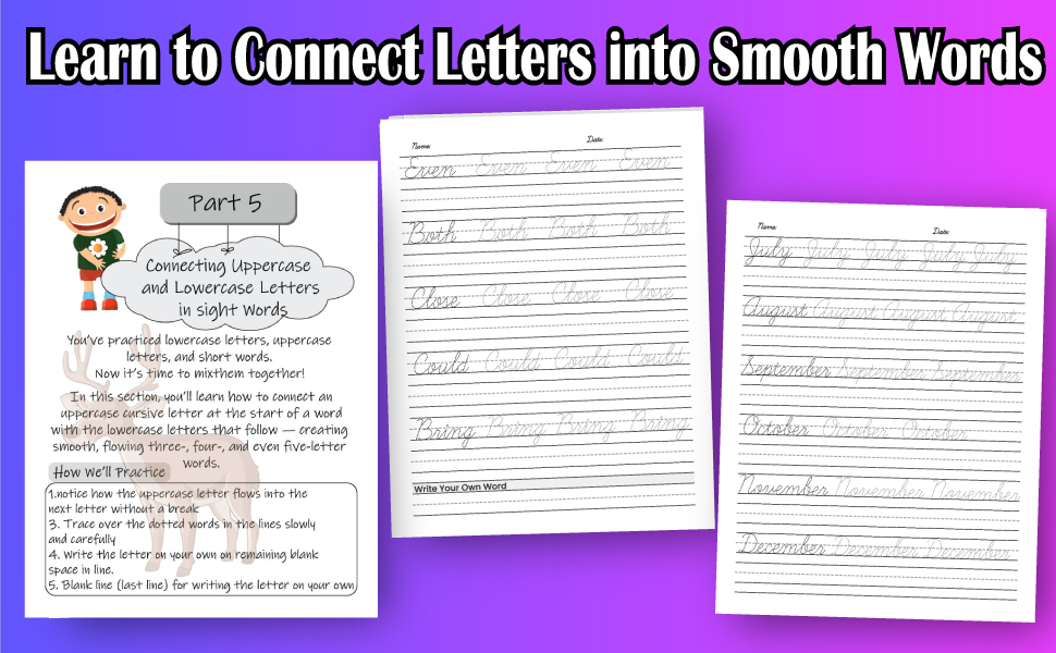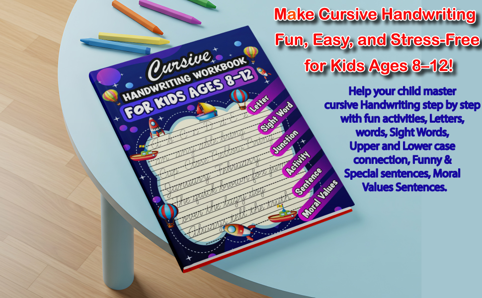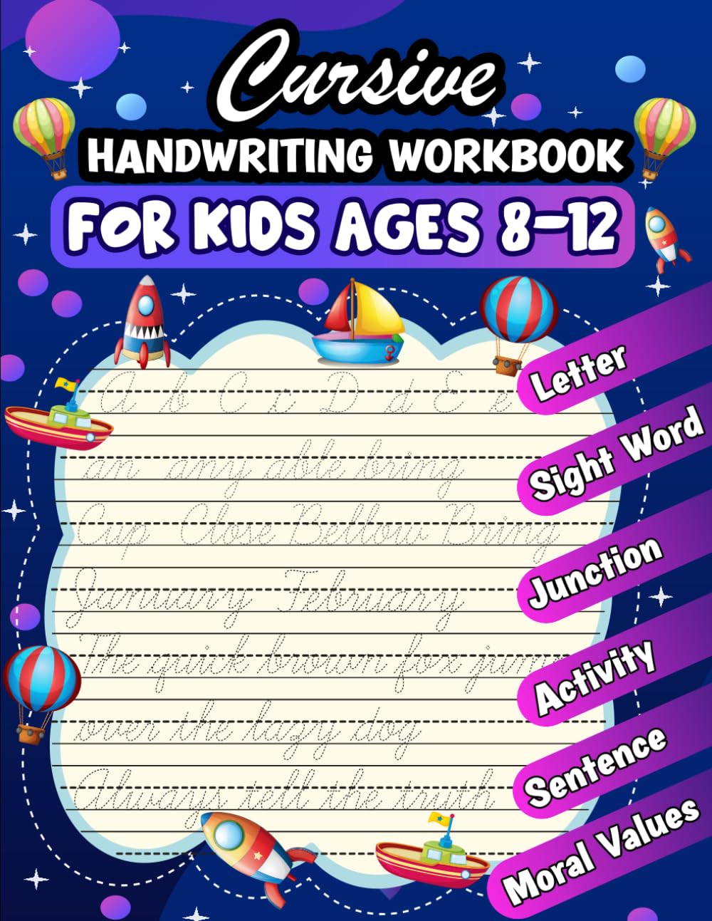 This workbook especially made for kids ages 8-12 years to learn step by step Cursive writing with lots of pages for practice. This Book helps kids to build confidence, write neatly, and enjoy learning Cursive Fun and perfect for both home learning and your kids classroom practices